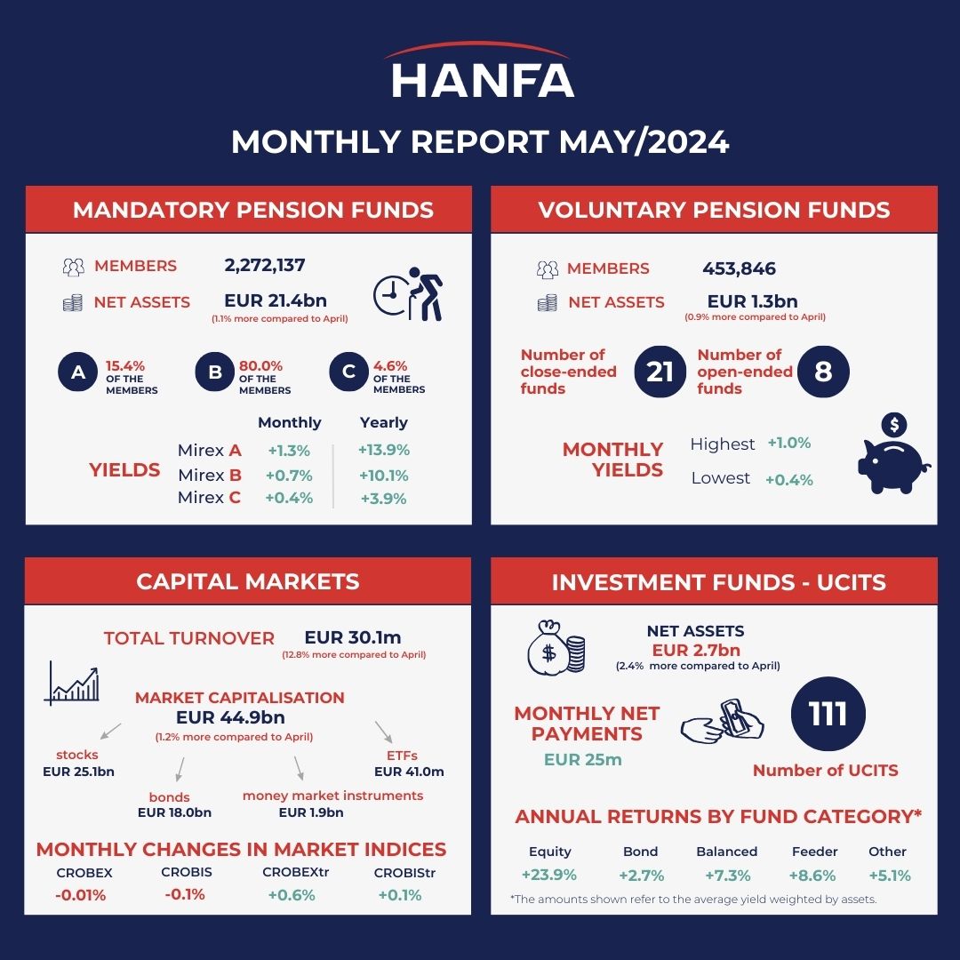 Net assets of the Fund for Croatian Homeland War Veterans and Members of their Families amounted to EUR 168.0m (a 2.5% monthly increase), with the monthly return of the fund reaching 2.7%.