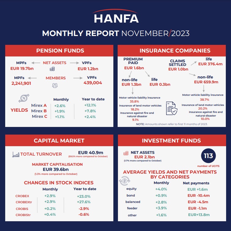 The net assets of the Fund for Croatian Homeland War Veterans and Members of their Families amounted to EUR 142.7m (a 0.2% monthly increase), with the monthly return of the fund reaching 0.4%.
