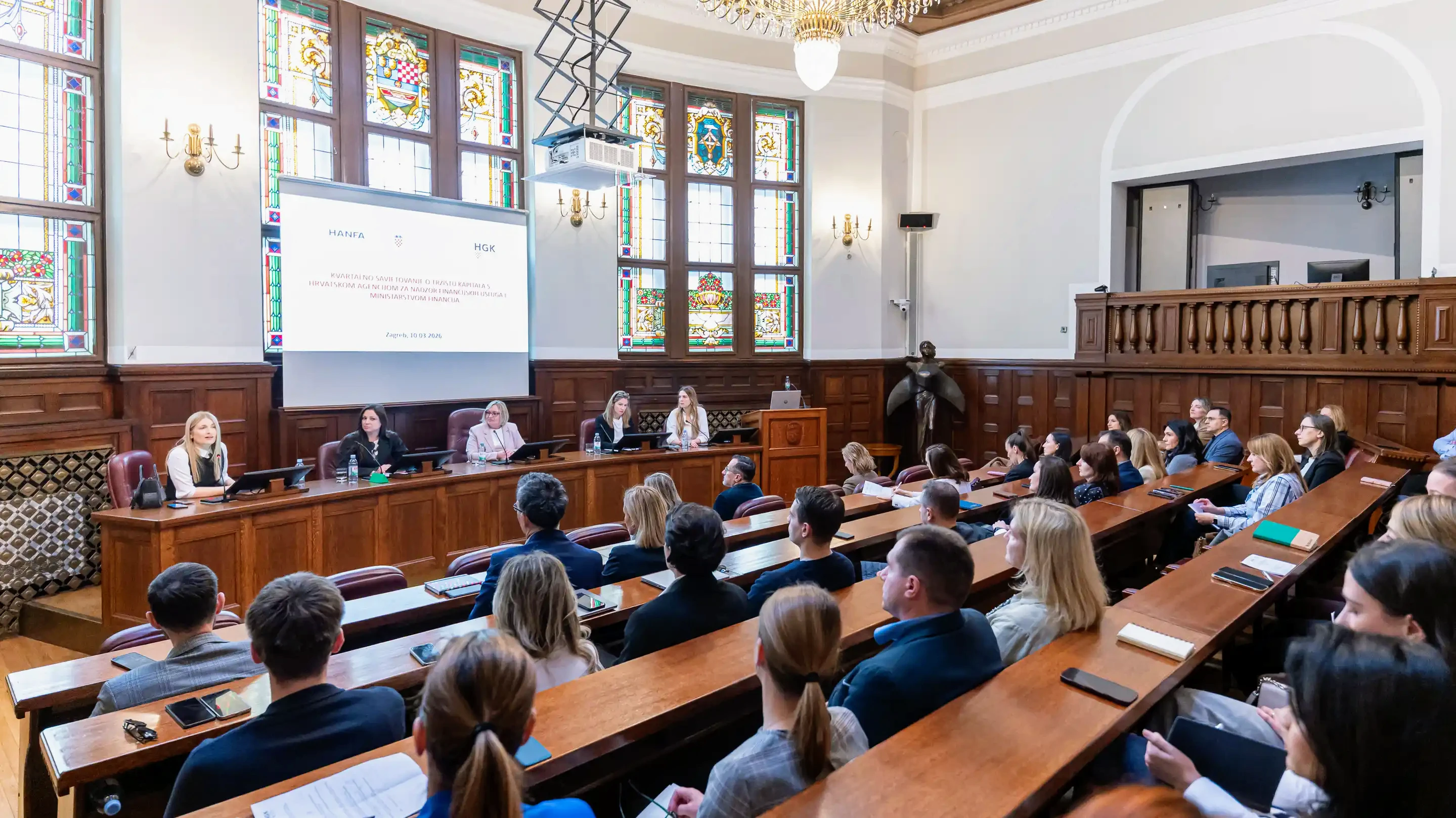 Kvartalna savjetovanja predstavljaju dobru praksu razmjene mišljenja između regulatora i predstavnika financijske industrije te se nastavljaju i u ovoj godini. Dana 10. ožujka 2026. održano je prvo ovogodišnje savjetovanje s predstavnicima Hrvatske agencije za nadzor financijskih usluga (Hanfa) i Ministarstva financija, uz organizacijsku podršku Hrvatske gospodarske komore (HGK).